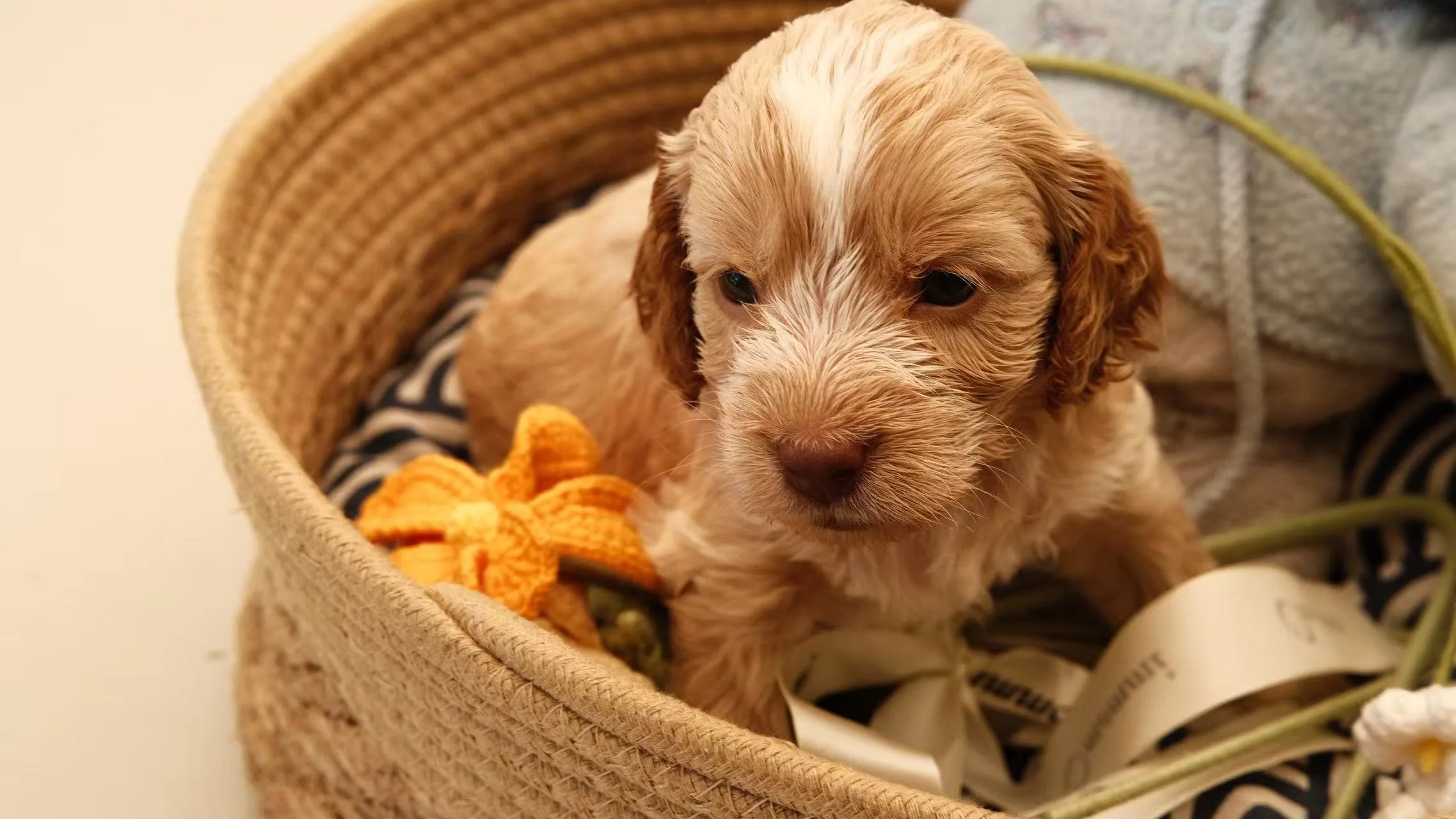Soft Golden-Apricot Coat with a Crisp White Facial Blaze Medium Spoodle (B5)